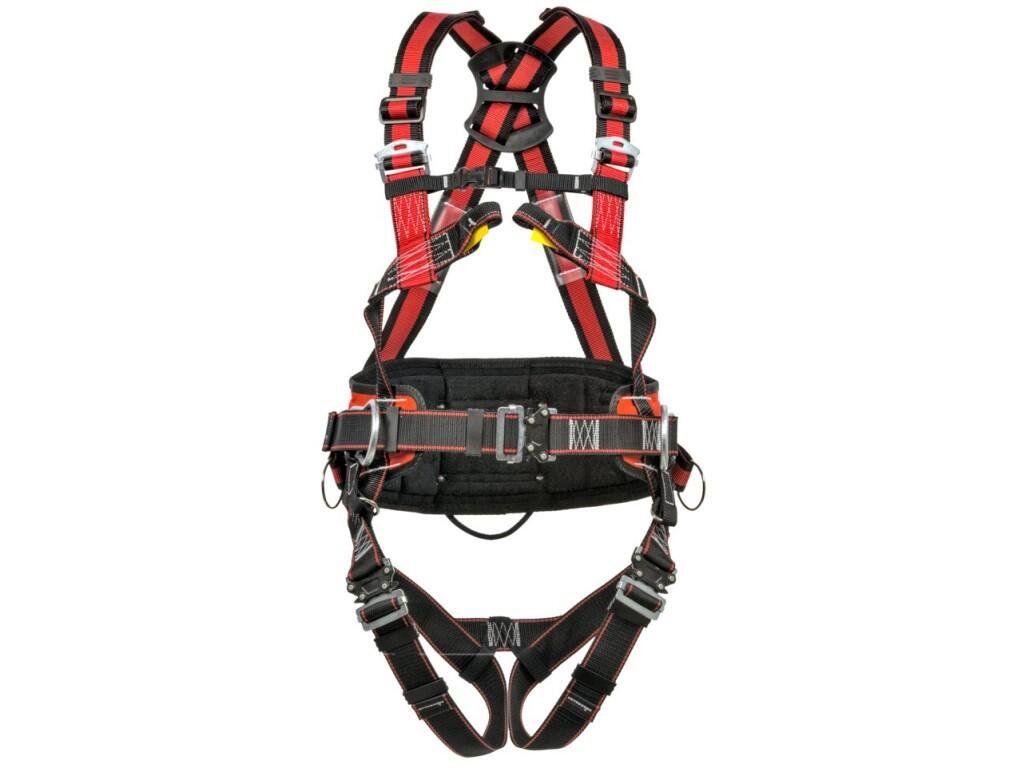 Bezpečnostní celotělový postroj, základní vybavení: - zadní připojovací spona - pro připojení systému zachycení pádu, - přední připojovací smyčky - pro připojení systému zachycení pádu, - zapínací a nastavovací spony - pro komfortní nasazení a používání postroje, - pohyblivý polohovací pás s automatickou sponou z vysokouhlíkové oceli.Doplňkové parametry