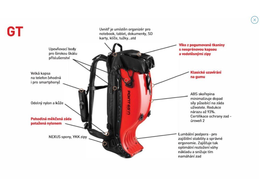 Batoh je certifikovány dle EN 1621-2 jako zcela plnohodnotná ochrana zad (pouze za předpokladu správného použítí, především utažení). "Master Class" Back Protector úroveň 2 : certifikace pro ochranu zad. Přenos síly pouze 5,8 kN [CE/TüV]. Nejlepší ochrana Vašeho vybavení. Batoh Boblbee GT 20L je vybaven měkkčenými zády, nepromokavým víkem z pogumované tkaniny s neoprenovou kapsou a nepromokavé zipy. Redukce nárazu je až 88%. Batohy jsou univerzální a nabízí celou řadu doplňků, které umožňují přenášet opravdu rozmanitý náklad. Základní objem je 20 litrů, základní váha je 1900 g, konečná váha i objem závisí na dokoupeném příslušenství. PŘIHRÁDKA NA NOTEBOOK - maximální velikost notebooku - 15 palců / 33 x 23 x 5 cm. NORMA IATA PRO ZAVAZADLA - lze použít jako příruční zavazadlo. Optimalizovaný design pro snadné nošení, komfort a aerodynamiku. Vyvážené a stabilizační ergonomické vlastnosti pro aktivní uživatele.Certifikát třídy 2 pro ochranu zad - skořepina byla navržena tak, aby minimalizovala dopad síly působící na záda uživatelů. Působící síla se rozprostře do co největší plochy, a tím sníží náraz a transformaci energie na jednotku plochy.Bederní podpůrný systém (Lumbar Support System) - tvar skořepiny ve tvaru S odděluje horní úložný prostor od spodní bederní oblasti - zajišťuje tak optimální rozložení váhy nákladu a snižuje tím namáhání zad.Aerodynamický design - design kombinuje uživatelské nároky související s rychlostí. Skořepina snižuje aerodynamický odpor na těle, bez externího příslušenství a popruhů je odpor větru minimální. SKOŘEPINANA NOTEBOOKNA CESTYORANŽOVÁ MAT49X29X15 CM1800 G35X23X5 CM20 LDoplňkové parametry
