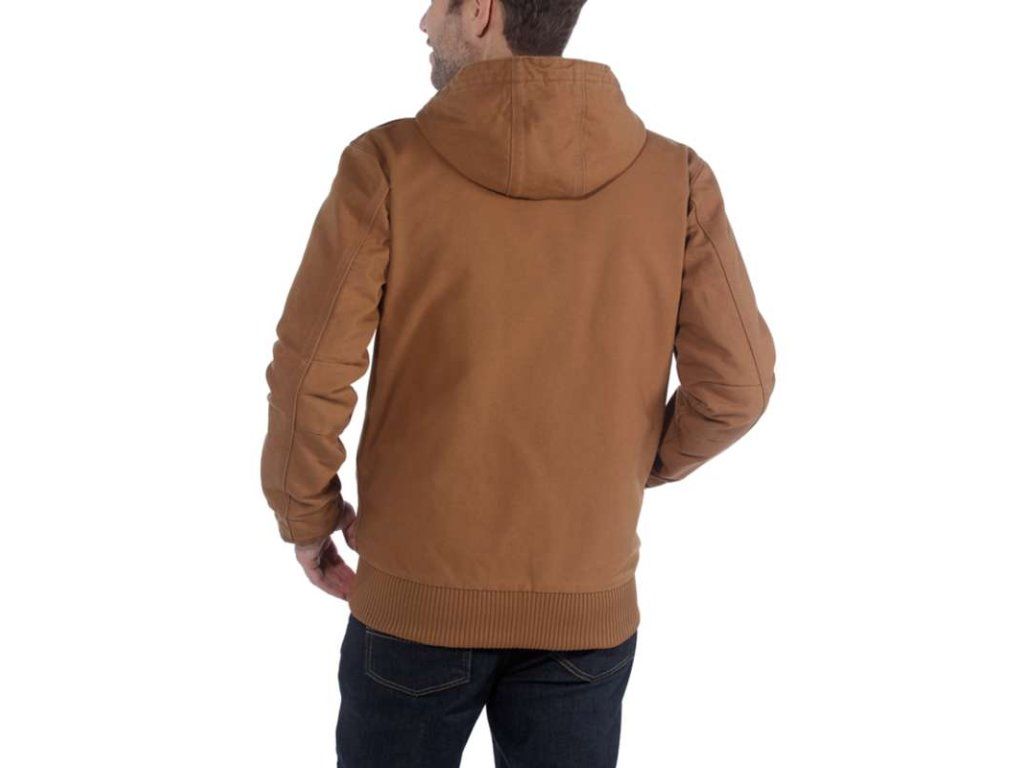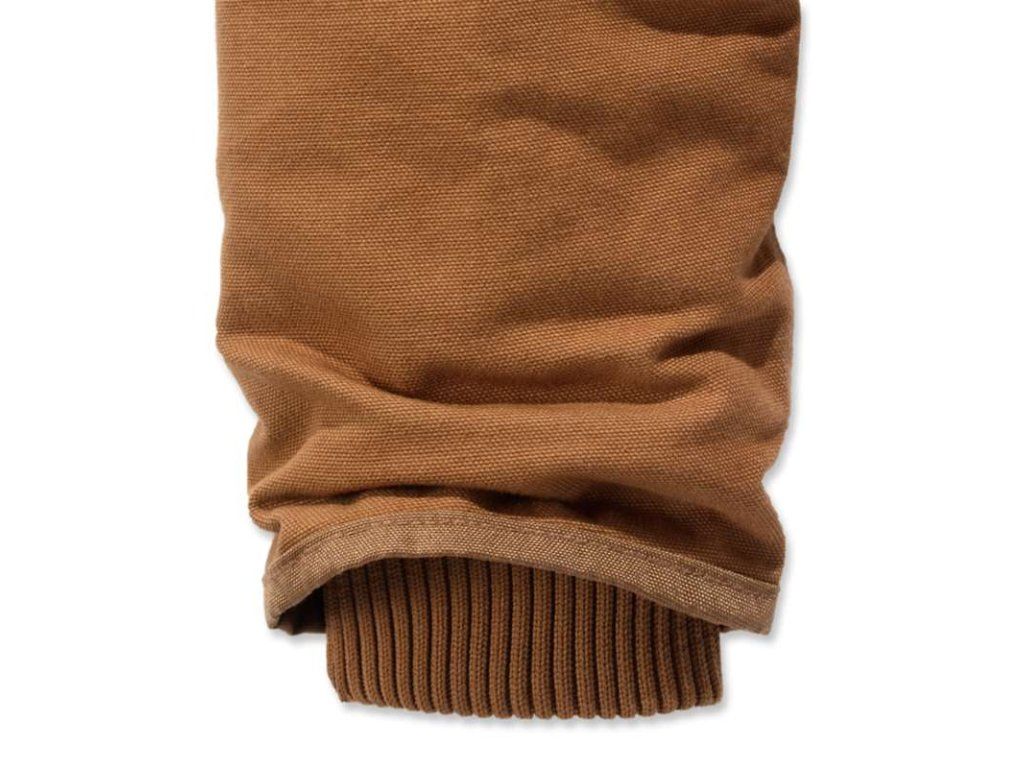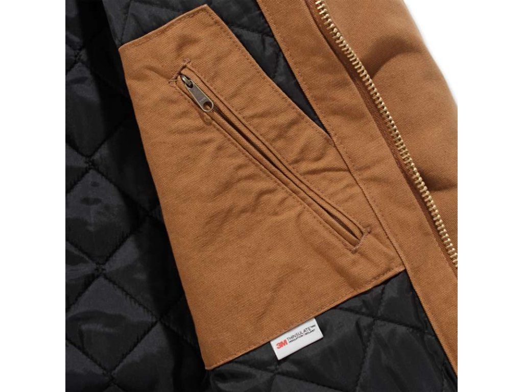 Tělo bundy a kapuce jsou podšity v prošívaným flanelem.Rukávy jsou podšité prošívaným nylonem.Kapuce bundy je složená ze tří dílů aby ideálně obepnula Vaší hlavu a zabránila uniku tepla.Pro omezení uniku tepla je kapuce jak ukončena stahovací šňůrkou.Bunda obsahuje dvě vnější a dvě vnitřní kapsy .Dvě vnější kapsy jsou umístěny u pasu a mají zvýšené okraje aby bránily samovolnému vypadnutí věcí z kapes.Vnitřní kapsa na levé straně se uzavírá na suchý zip , na pravé straně je kapsa na zip .Žebrované manžety na rukávech a spodní lem pomáhají bránit uniku tepla .Samozřejmostí je trojité prošití hlavních švů.Bunda je vyrobena ze 100% bavlny v provedení plátna sandstone duck.síla tohoto plátna je 12 unce / 407 gramů. Zateplené tělo bundy flanelovou podšívkou .Rukávy zatepleny nylonovou podšívkou.Čtyři kapsy .Žebrované manžety na rukávech a spodní lem. Trojdílná kapuce .Trojitě prošité hlavní švy .12 oz/407 g.100% bavlna vysoce kvalitní pevné plátno -sandstone duck .Speciálně prané pro jemnější výsledek .Bunda je v barvě carhartt brown - hnědá.