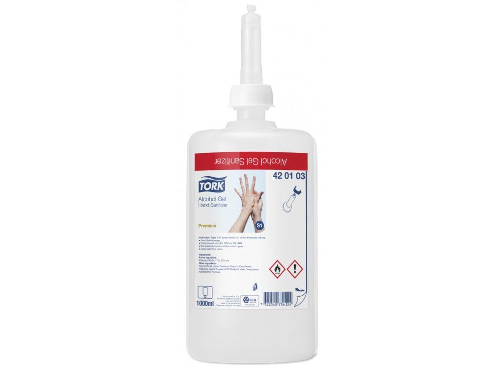Tork Alcohol gelový dezinfekční prostředek na ruce je účinný dezinfekční prostředek. Je ideálním řešením pro čištění rukou, když není k dispozici voda. Gel vaše ruce snadno navlhčí bez odkapávání. Ani při častém používání nezanechává na rukou lepkavý film. Není parfémovaný a obsahuje hydratační složky, které chrání ruce. Gel je kompatibilní s Tork zásobníky na tekuté a sprejové mýdlo S1.