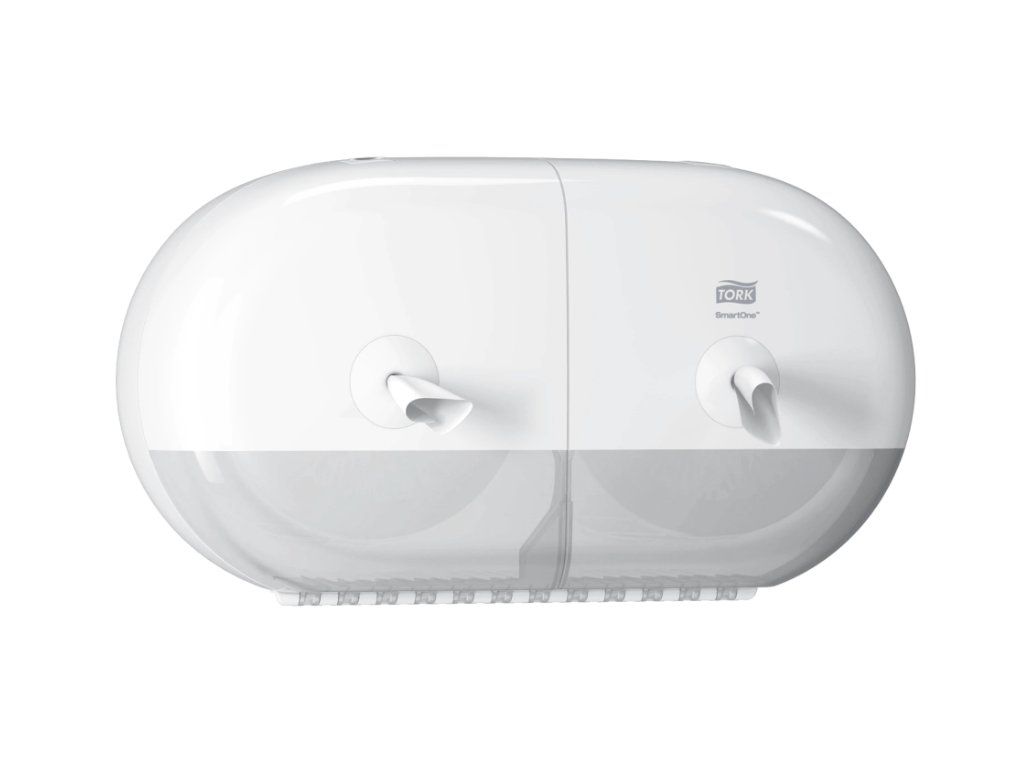 Tork SmartOne® Twin Mini zásobník na toaletní papír v designu Elevation je efektivní a velmi robustní systém dávkování, vhodný pro náročné toalety a umývárny s vysokou návštěvností. Kapacita na dvě role a dávkování po jednotlivých útržcích snižují v porovnání s tradičními zásobníky na jumbo role spotřebu až o 40 %. Díky tomu vystačí každá role pro více návštěvníků. Kompatibilní s Tork SmartOne mini toaletním papírem T9.